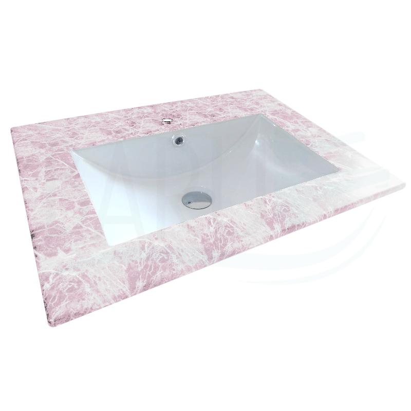 Lavamanos integrado emperador de porcelana para empotrar, rebose, encimera rosada con acabado rustico y medidas de 60x47 centímetros y 17Cm de altura