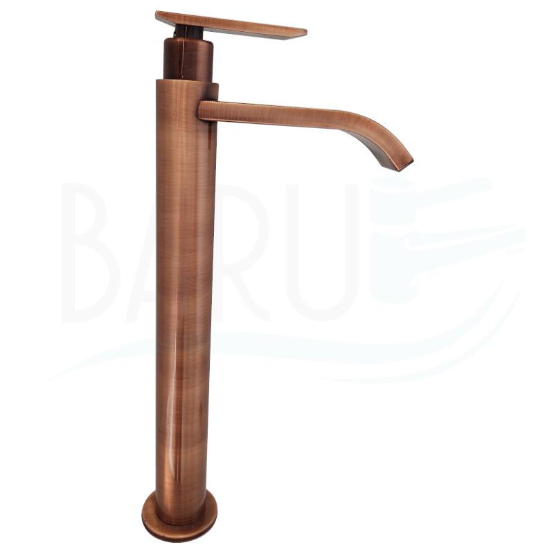 Llave alto de lujo estilo cascada para agua fría cuello plano y curvo con acabado color Cobre para lavamanos de sobre poner