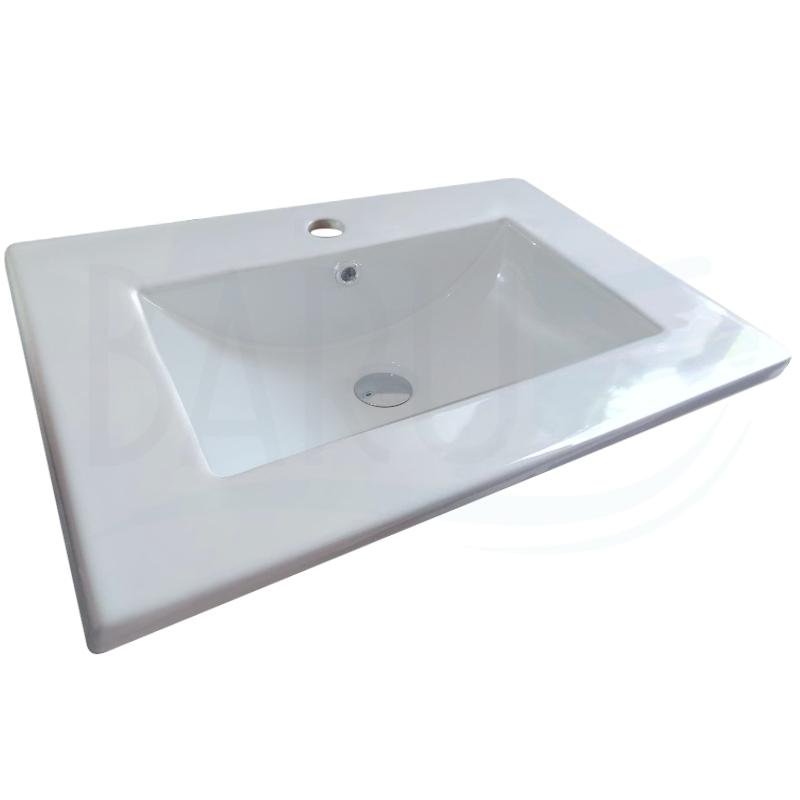Lavamanos integrado de porcelana para empotrar, rebose y medidas de 60x47 centímetros y 17Cm de altura