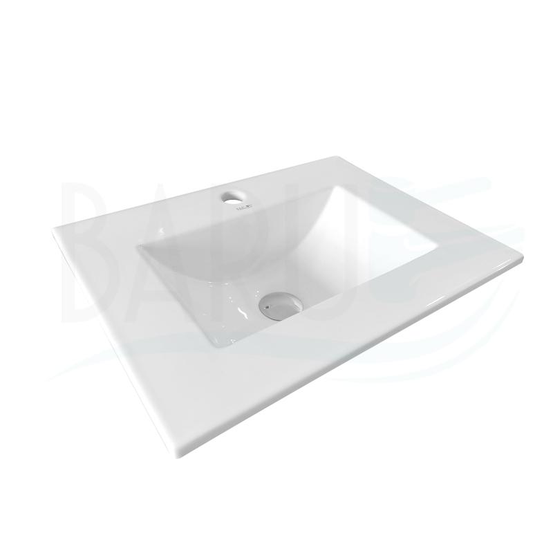 Lavamanos integrado de porcelana blanco para empotrar con rebose y medidas de 60x40 centímetros y 17Cm de altura