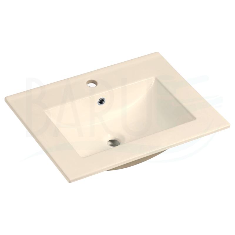 Lavamanos integrado de porcelana beige para empotrar con rebose y medidas de 60x40 centímetros y 17Cm de altura