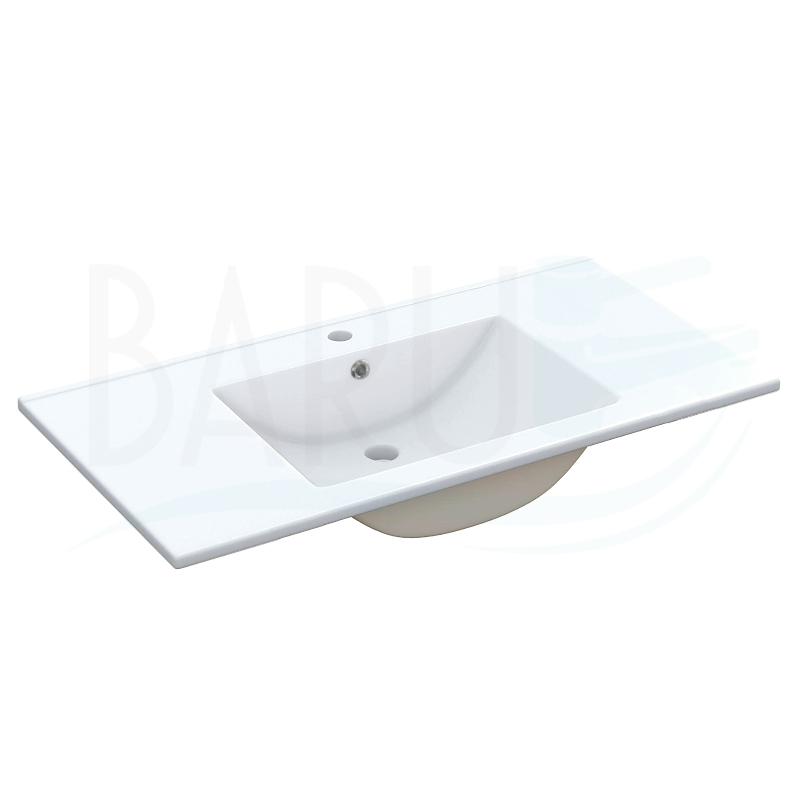 Lavamanos integrado de porcelana blanco para empotrar con rebose y medidas de 100x46 centímetros y 18Cm de altura