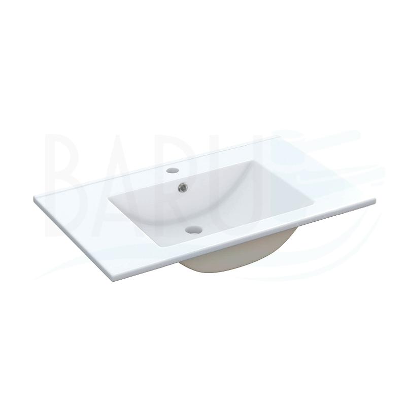 Lavamanos integrado de porcelana blanco para empotrar con rebose y medidas de 80x47 centímetros y 17Cm de altura