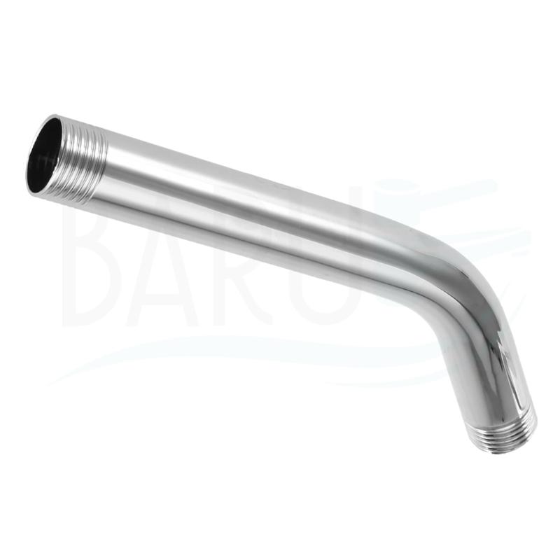 Tubo metálico brazo para regadera de 15Cm de largo con ángulo de 45 grados estilo tubular con escudo y acabado Cromado