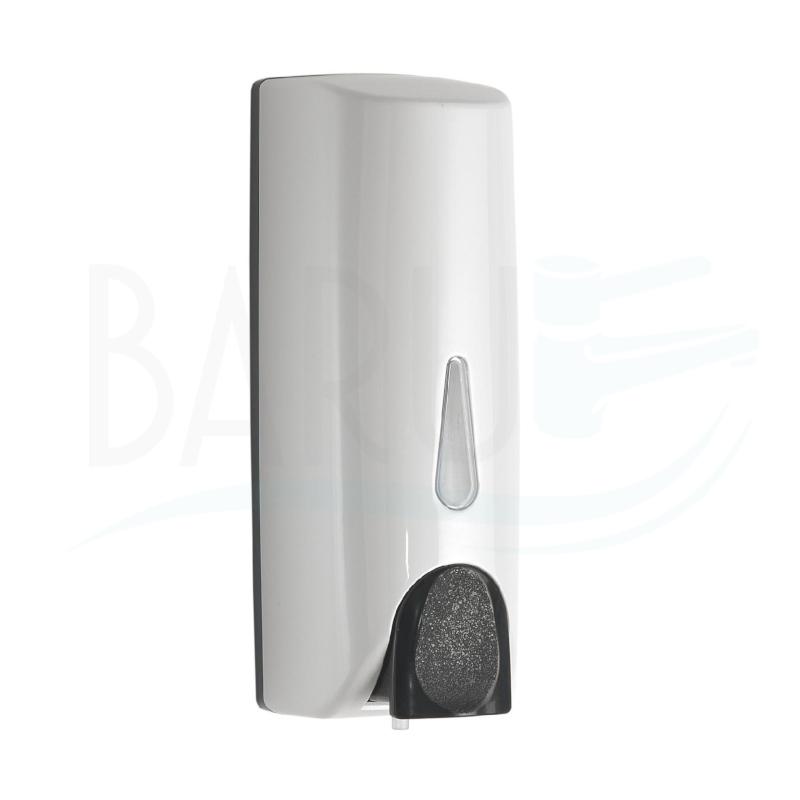 Dispensador manual plástico con acabado cromado tipo push para jabón