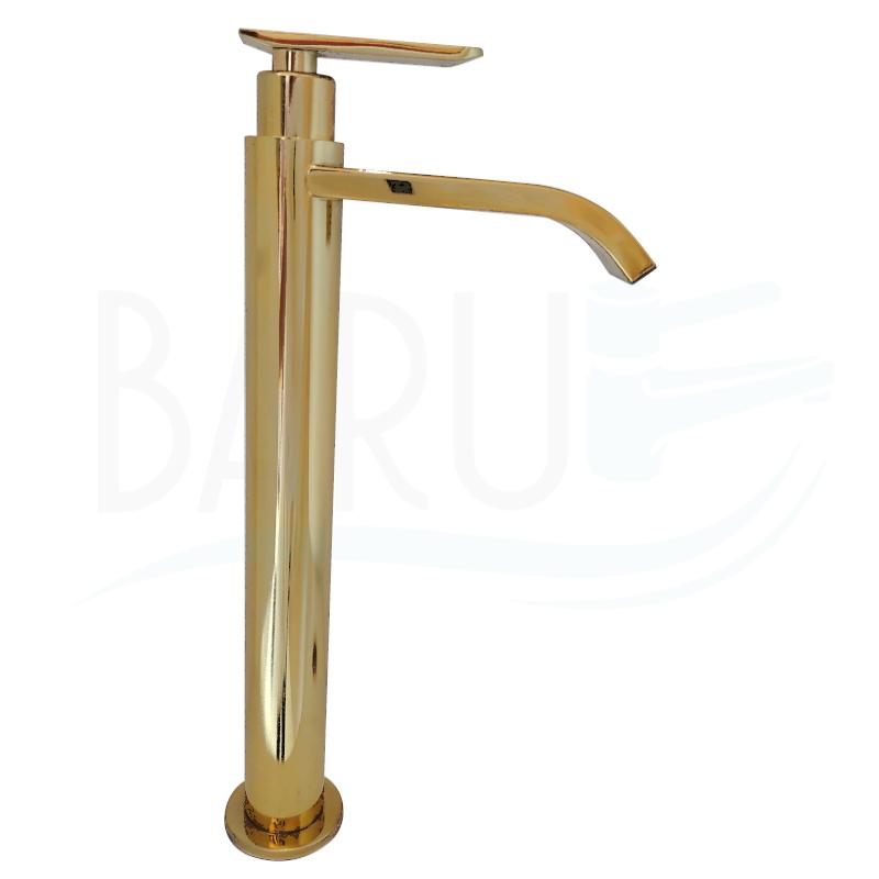 Grifo alto de lujo estilo cascada para agua fría cuello plano y curvo con acabado Oro para lavamanos de sobre poner