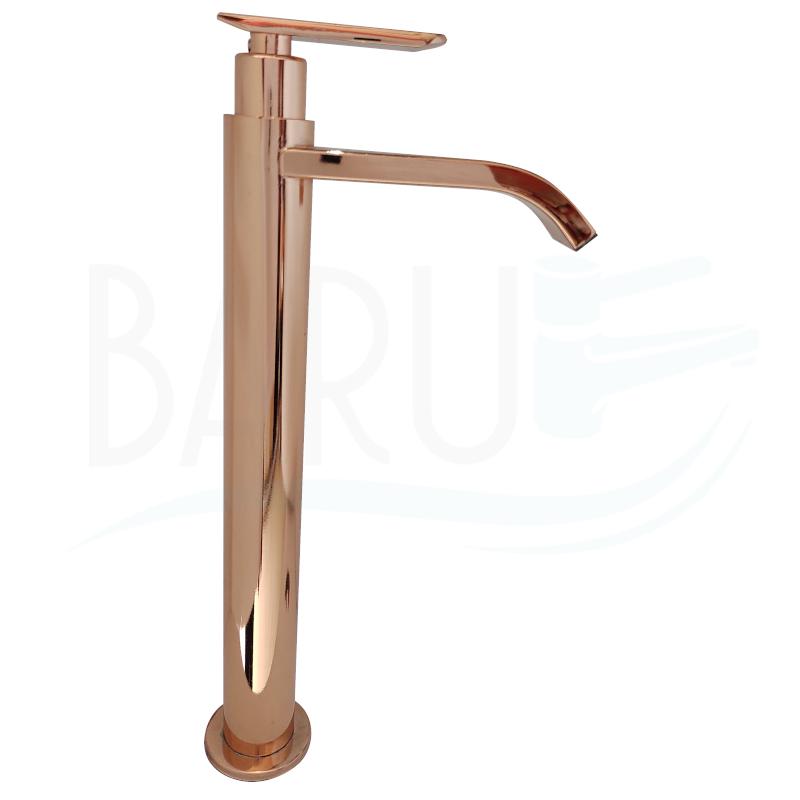 Grifo alto de lujo estilo cascada para agua fría cuello plano y curvo con acabado Oro para lavamanos de sobre poner