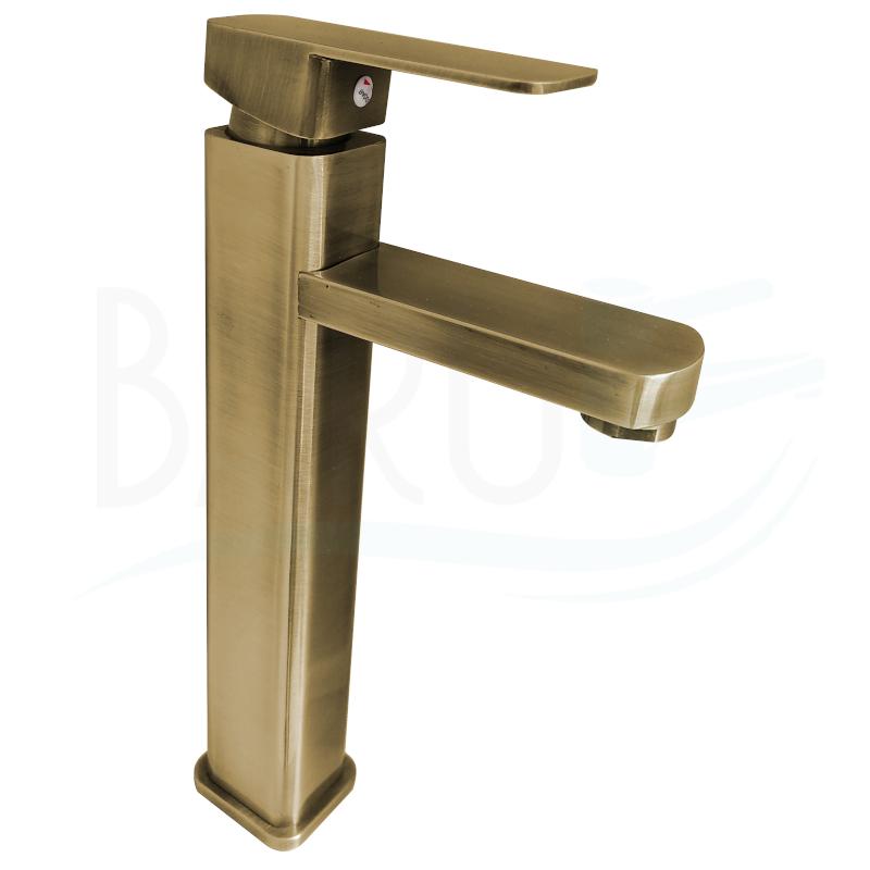 Mono control de lujo poste alto diseño cuadrado acabado Bronce para lavamanos de sobre poner