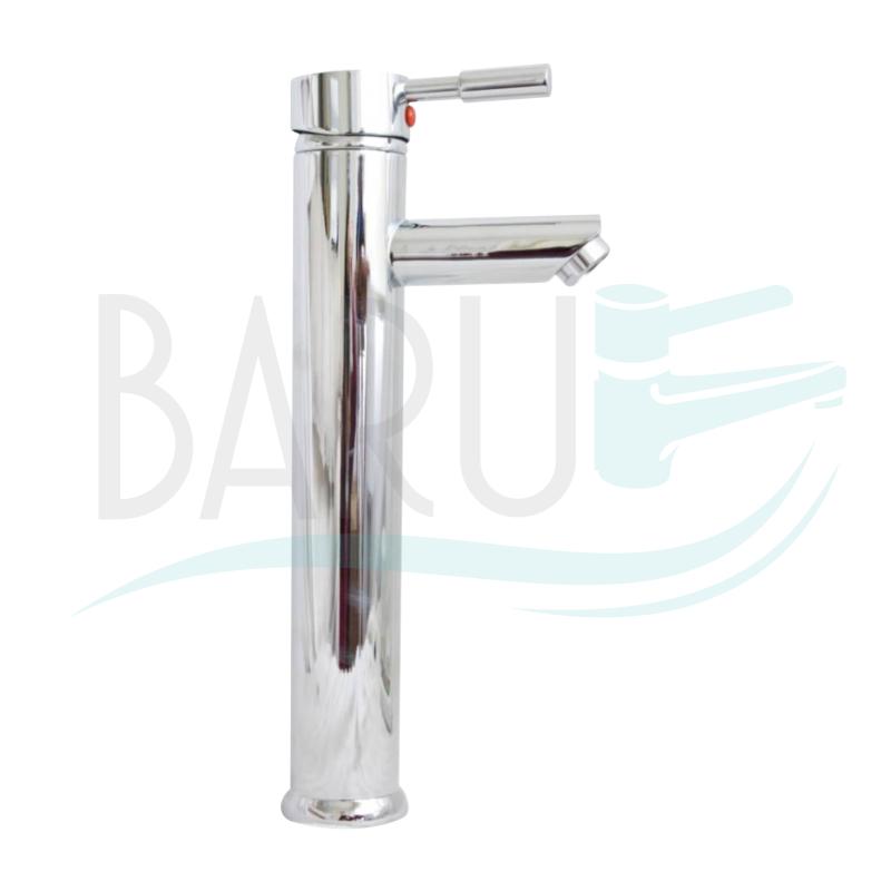 Mono control alto de lujo con acabado Cromado de cuello recto para lavamanos de sobre poner