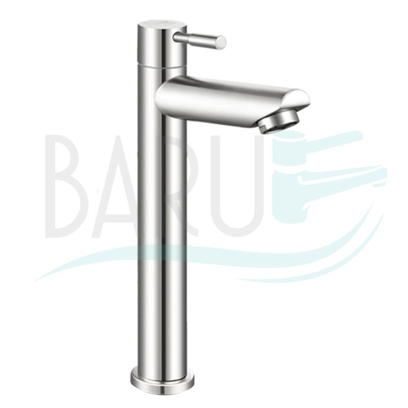 Grifo poste alto de lujo en acero 304 cepillado de cuello recto para lavamanos de sobre poner