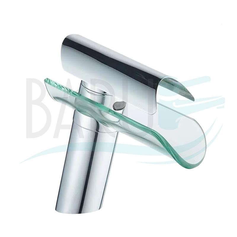 Mono control bajo de lujo estilo canoa cascada de cristal y metal con acabado Cromado para lavamanos de empotrar