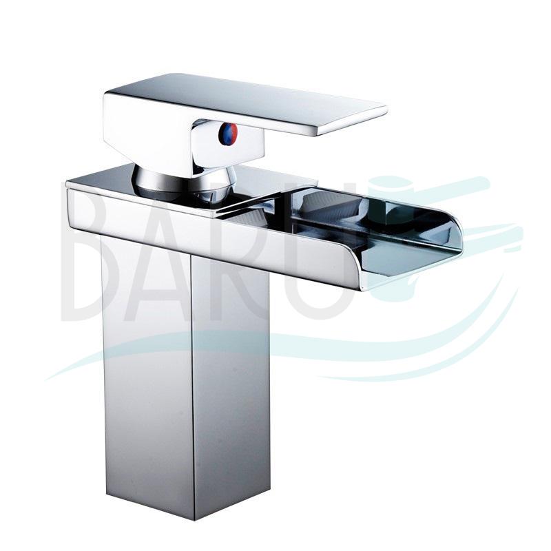 Mono control bajo de lujo estilo cascada rectangular en metal con Cromado para lavamanos de empotrar