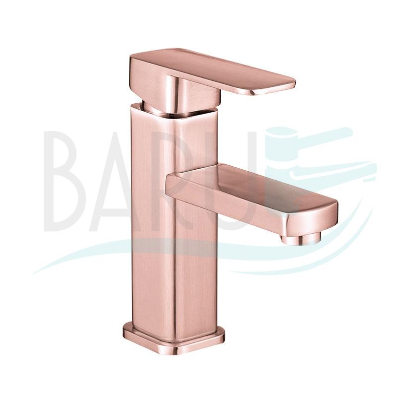 Mono control poste cuadrado bajo de lujo con acabado Oro Rosa para lavamanos de empotrar