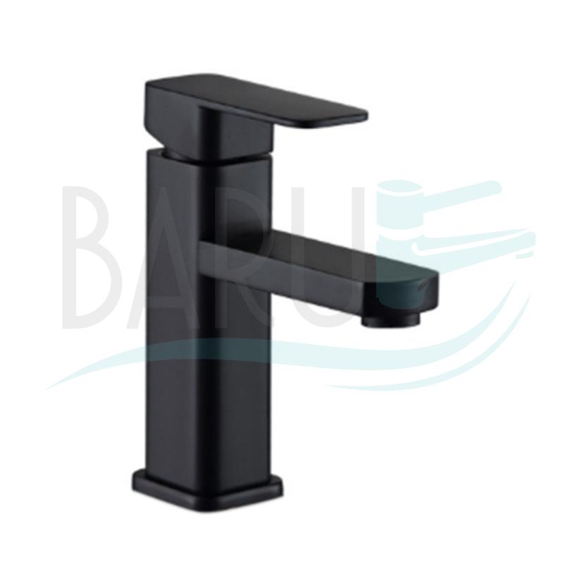 Mono control poste cuadrado bajo de lujo con acabado Negro mate para lavamanos de empotrar